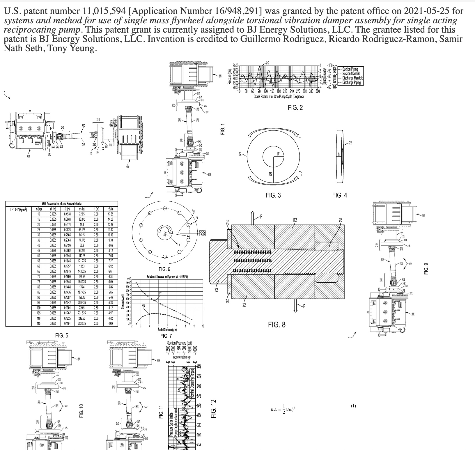 See also: U.S. patent number 11,015,594 [Application Number 16/948,291] was granted by the patent office on 2021-05-25 for systems and method for use of single mass flywheel alongside torsional vibration damper assembly for single acting reciprocating pump. This patent grant is currently assigned to BJ Energy Solutions, LLC. The grantee listed for this patent is BJ Energy Solutions, LLC. Invention is credited to Guillermo Rodriguez, Ricardo Rodriguez-Ramon, Samir Nath Seth, Tony Yeung.
