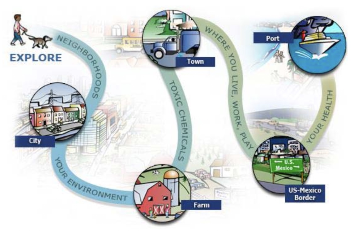 As of Sept 2019 you can no longer explore Tox Town by selecting Neighborhoods, Location links or Chemical links.